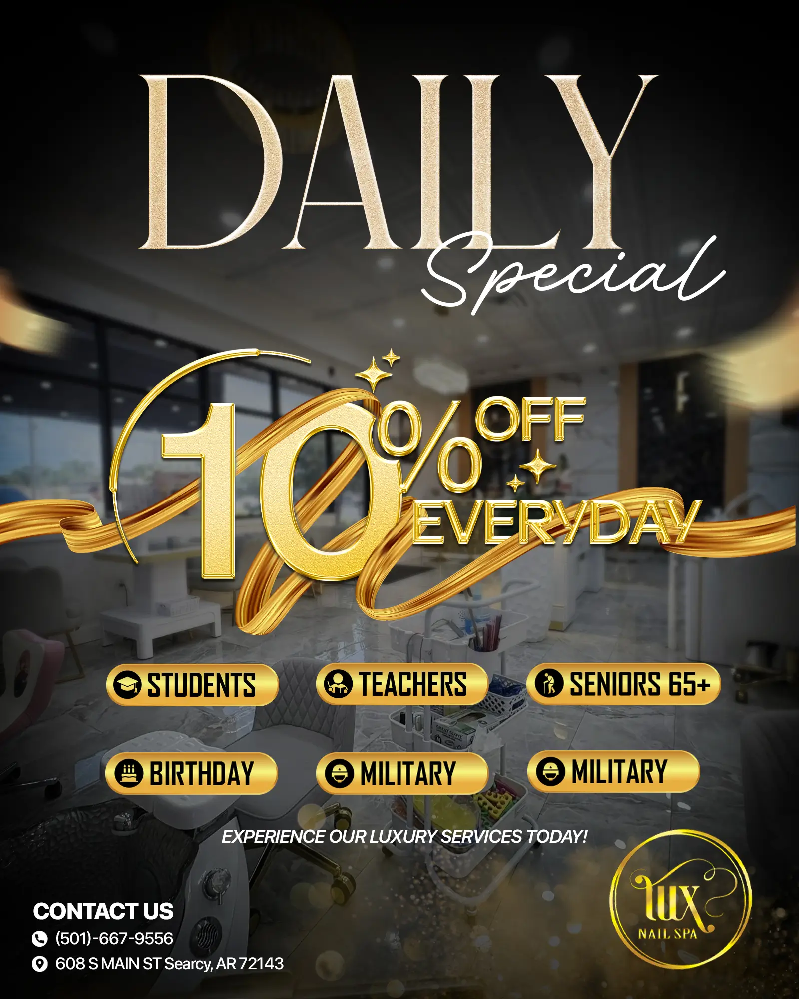 Located in the vibrant neighborhood of Searcy, AR 72143, Lux Nail Spa has become the go-to destination for those seeking a perfect combination of relaxation and impeccable nail care.